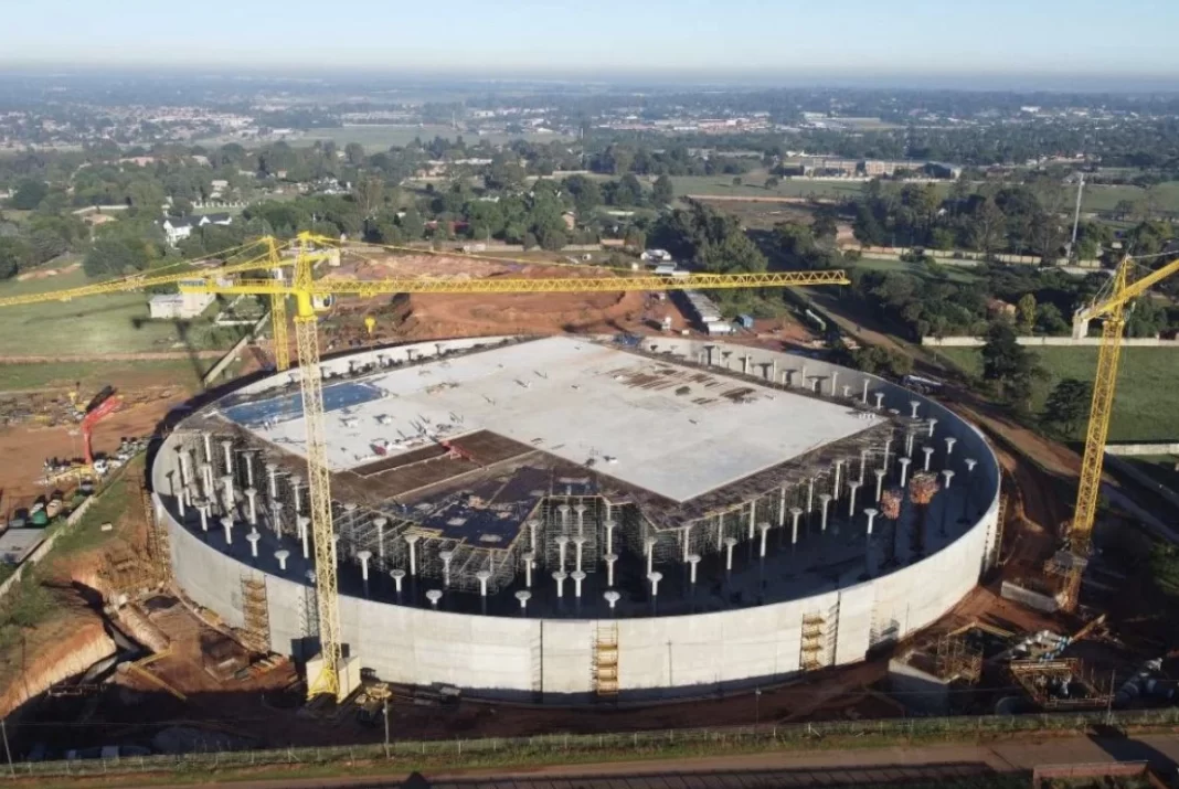 According to the utility, the newly-built 210 megalitre Vlakfontein Reservoir is the largest cylindrical and circular reservoir in South Africa, and one of the biggest in the world.