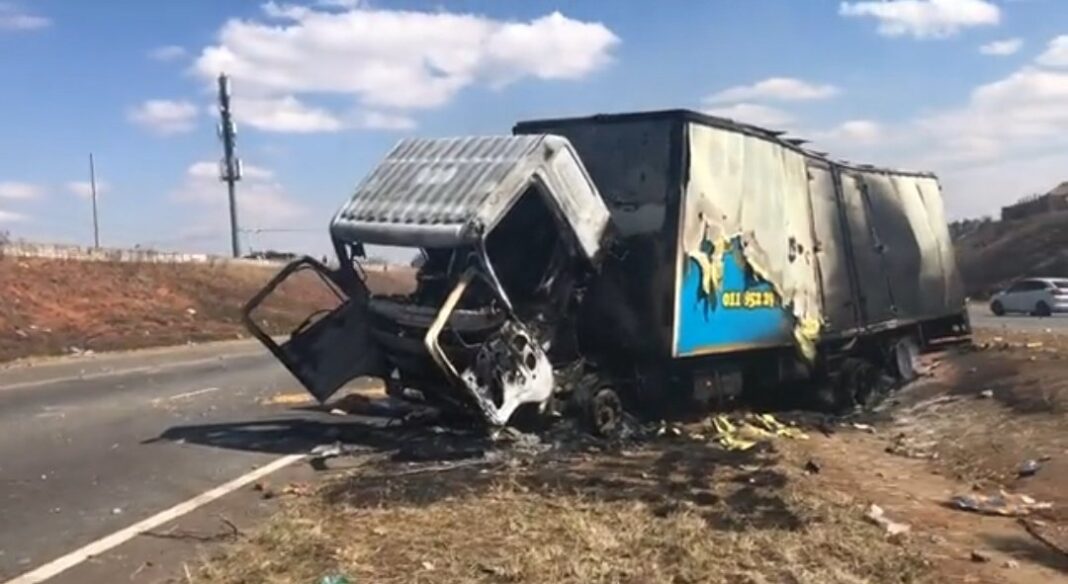 A truck has been torched and attacked by looters on the N12 highway near Eldorado Park, south of Johannesburg.