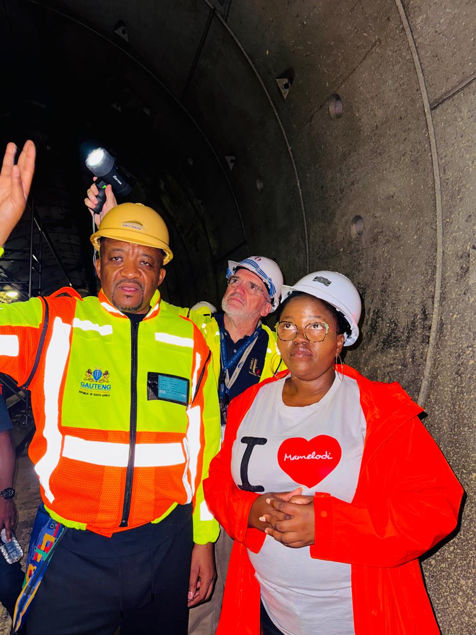 Gautrain CEO Tshepo Kgobe, Gauteng MEC for Transport and Logistic, Kedibone Diale-Tlabela, and Thulani Mdadane, Head of Department (HOD), visited the affected section of the rail network to assess the situation firsthand.